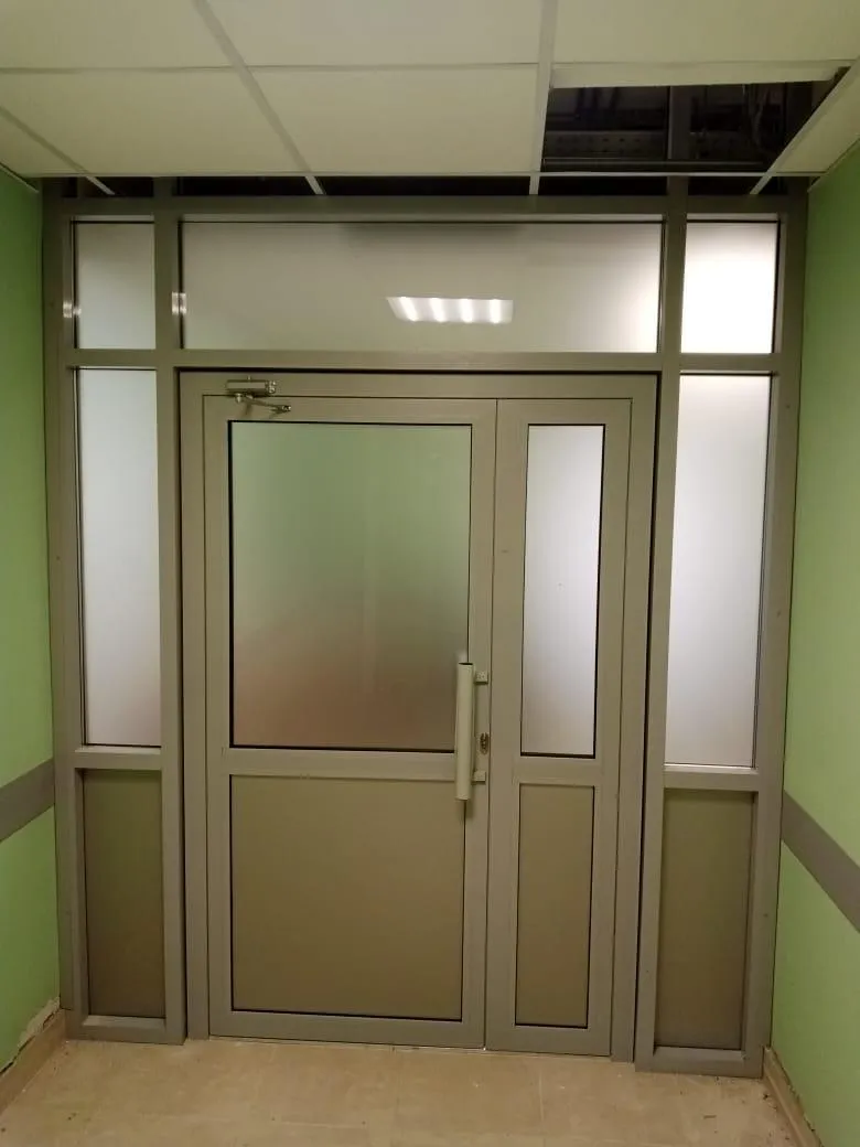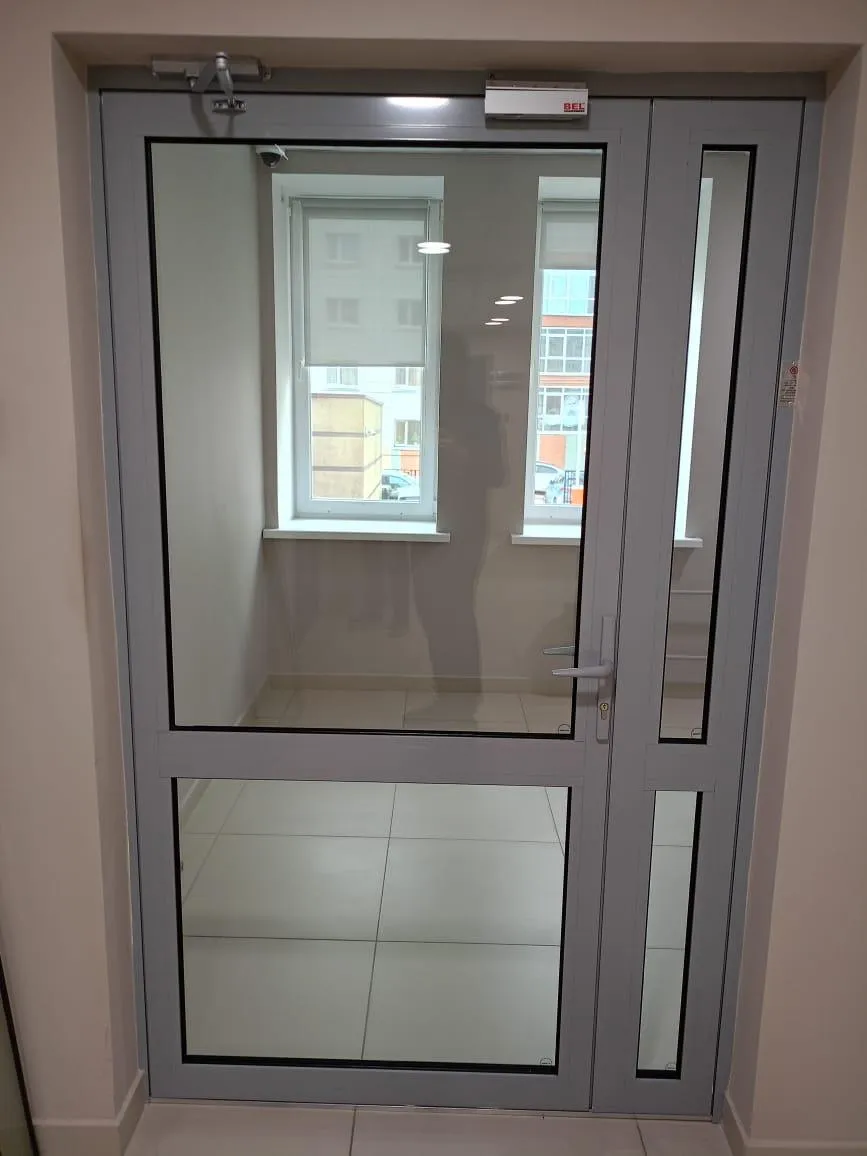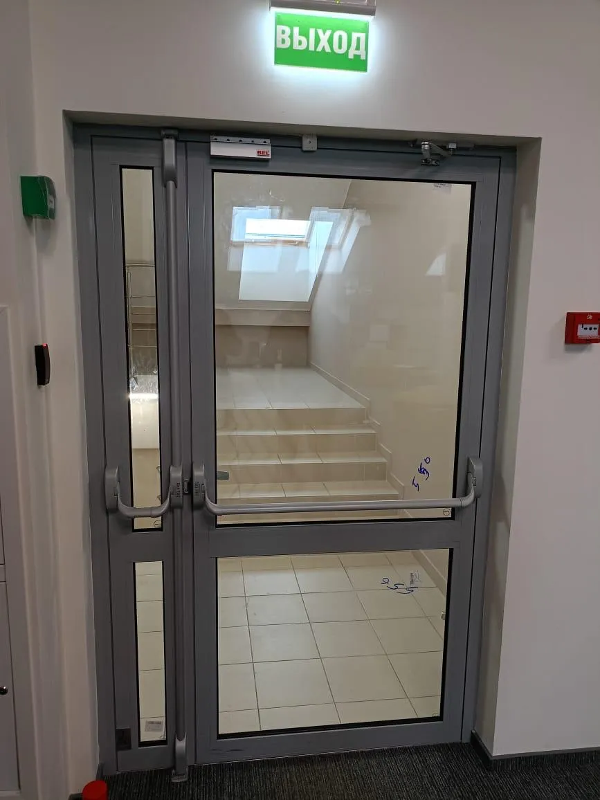 Установка алюминиевых противопожарных дверей заводом SK GEFEST